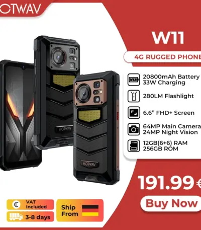 [Ship From Germany] HOTWAV W11 Rugged Phone 20800mAh 280LM Flashlight 6.6” FHD+ Smartphone 33W 24MP Night Vision Mobile Phone