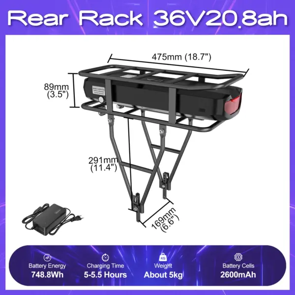 Rear Rack 36V20.8Ah(Grade A Cells) 4A Charger