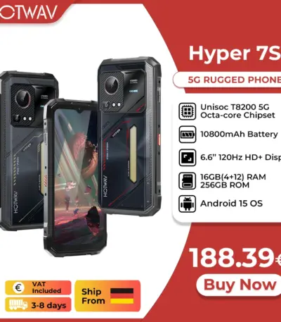 [Ship From Germany] HOTWAV Hyper 7S Rugged Mobile Phone 5G Android 15 Smartphone 6.6” 120Hz 10800mAh 4GB 256GB Cellphone