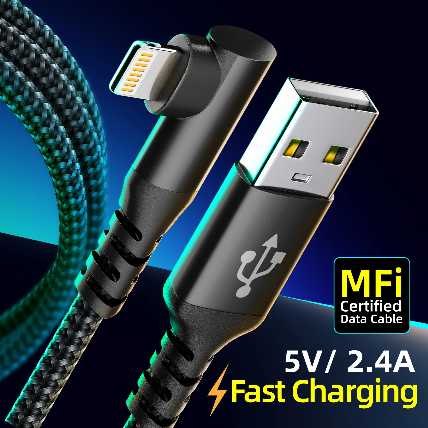 1PC 90 Degree for iPhone Charger 1m 2m 3m [ MFi Certified] 1pack Right Angle Nylon Braided USB Lightning Cable for iPhone14