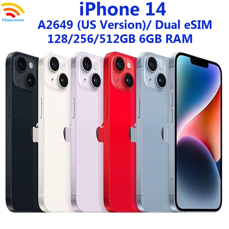 98% New iPhone 14 5G 6.1″ Dual-eSIM 128/256/512GB 6GB RAM iPhone14 Genuine Super Retina OLED Face ID NFC A15 5G Unlocked