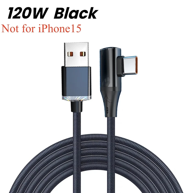90 Degree Elbow USB C Cable PD 120W Fast Charging Type C Cable For iPhone 15 Pro Max Samsung Xiaomi Huawei Charger Data Cord