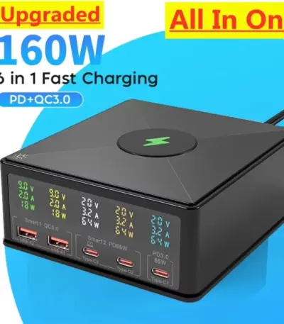 160W USB C GaN Charger Wireless Charger PPS PD 65W 100W Desktop Fast Charging Station Power for MacBook Tablet iPhone 16 Samsung