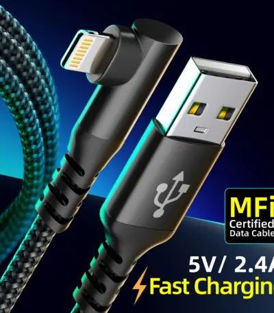 1PC 90 Degree for iPhone Charger 1m 2m 3m [ MFi Certified] 1pack Right Angle Nylon Braided USB Lightning Cable for iPhone14
