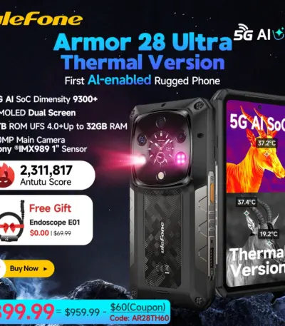【2025 New】Ulefone Armor 28 Ultra Thermal Imaging 5G AI Rugged Smartphone Android 1TB ROM+32GB RAM AMOLED 6.67″ Dimensity 9300+