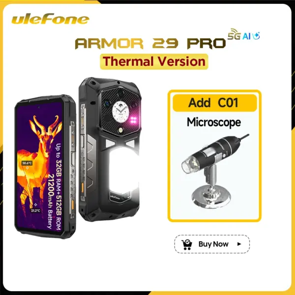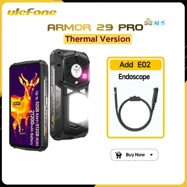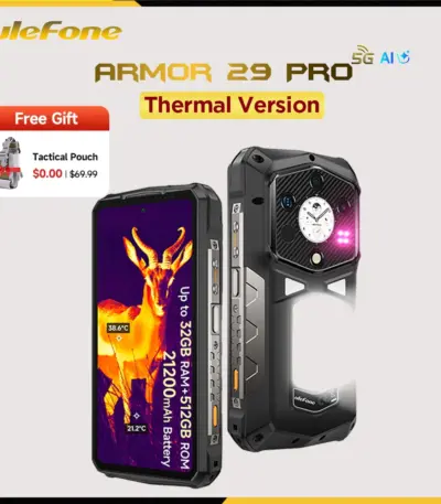 【2025 New】Ulefone Armor 29 Pro Thermal Version 5G Rugged Phone 21200mAh 120W Smartphone Android 15 6.67″ 120Hz 512GB ROM NFC