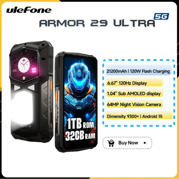 【2025 New】Ulefone Armor 29 Ultra 5G Rugged Phone Smartphone Android 15 32GB+1TB 21200mAh 120W Flash Charging Dual Screen NFC