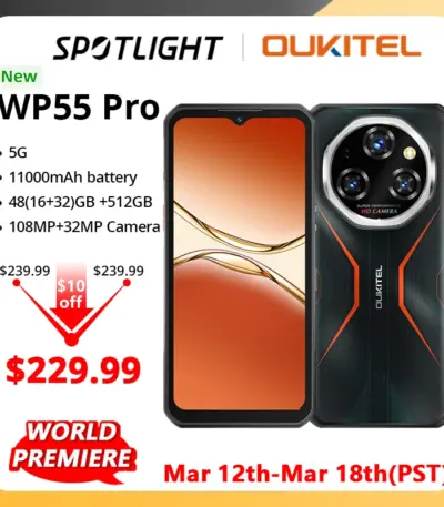 【World premier】Oukitel WP55 Pro 5G Rugged Smartphone 48GB(16+32) +512GB 11000mAh 33W 108MP 6.6″ FHD+ Cell Phone