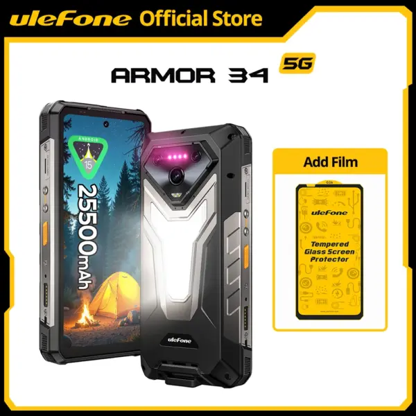 【World Premiere】Ulefone Armor 34 5G AI Rugged Phone 25500mAh Up to 32GB+512GB 120Hz 6.95″ NFC Android 15 Smartphon