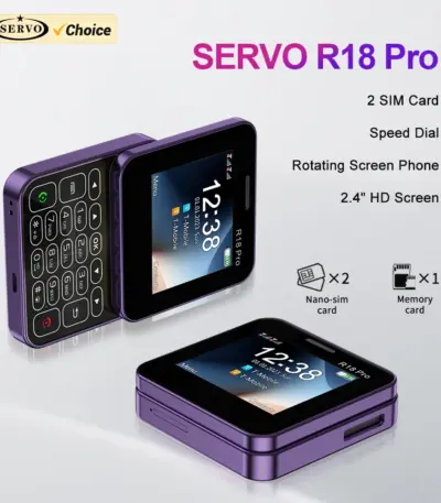 2024 NEW SERVO R18Pro Rotating Screen Mini Mobile Phone Flashlight Magic Voice 2.4″ Button Slider Cell Phones Dual SIM Standby