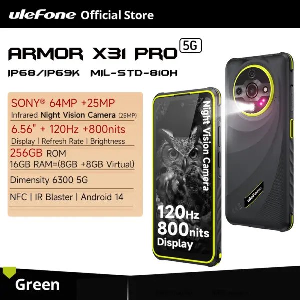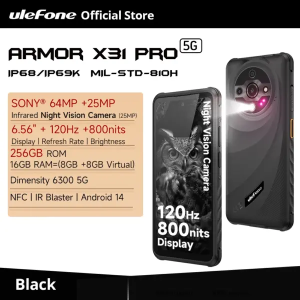 【World Premiere】Ulefone Armor X31 Pro 5G Rugged Phone Android 14 Smartphone 6.56”16GB + 256GB Night Camera 64MP 6050mAh NFC