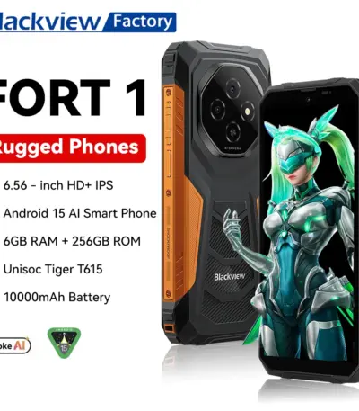 Blackview FORT 1 Rugged Phones 6.65″ 6GB RAM 256GB+2TB ROM Smartphones Android 15 Unisoc Tiger T615 10000mAh Telephone Portable