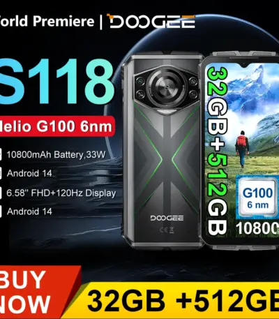 DOOGEE New S118 Helio G100 6nm Smartphone 32GB(12+20) 512GB 10800mAh 33W Charging NFC Android 14 Rugged Mobile Phone