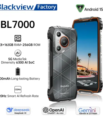 BLACKVIEW BL7000 Smartphone 5G 6.78″ HD+2.4K Display 120Hz, 24(8+16)GB 256GB Cerllphone, 7500Amh Battery Android 15 Rugged Phone