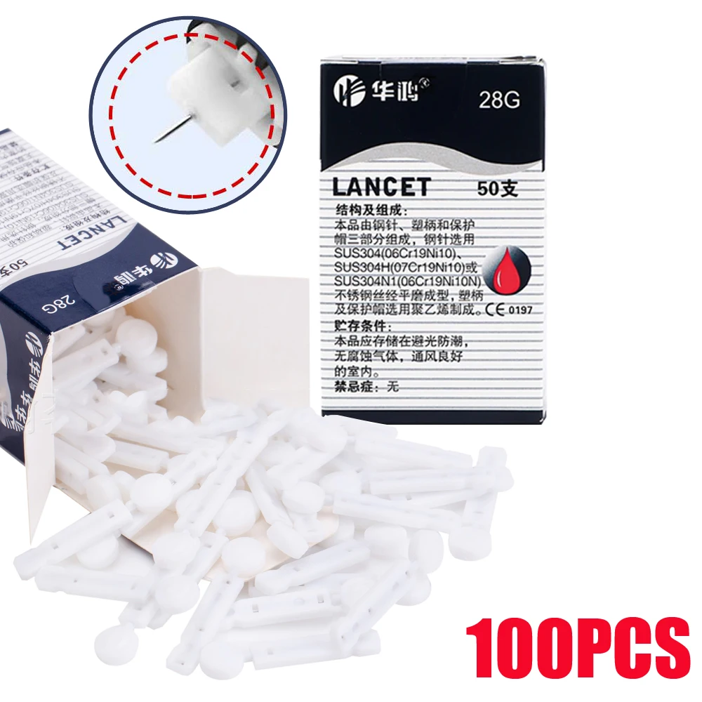 100Pcs Sterile Lancets Kit for 28g Pen Glucose Meter Disposable Needles Measuring Blood Sugar Level Medical Diabetes Accessories