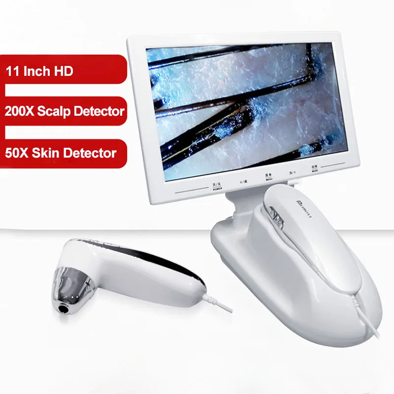 200/50X Skin Hair Scalp Detector Dermascope For Skin Scanner Machine Digital Microscope HD Hair Follicles Skin Analyzer 10 Inch