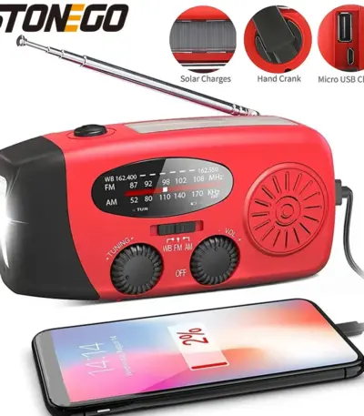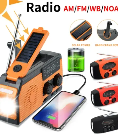 Solar Power Hand Crank Radio AM/FM/WB NOAA Weather Multifunctional Radio LED Flashlight Power Bank for Outdoor Camping Hiking