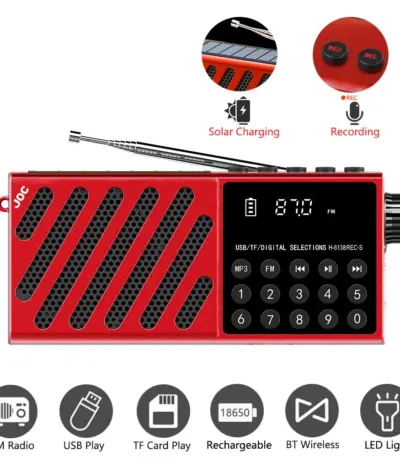 Solar FM Radio Portable Recargable Bluetooth Speaker USB TF Card Player with LED Lighting Recording Outdoor Radio FM Receiver