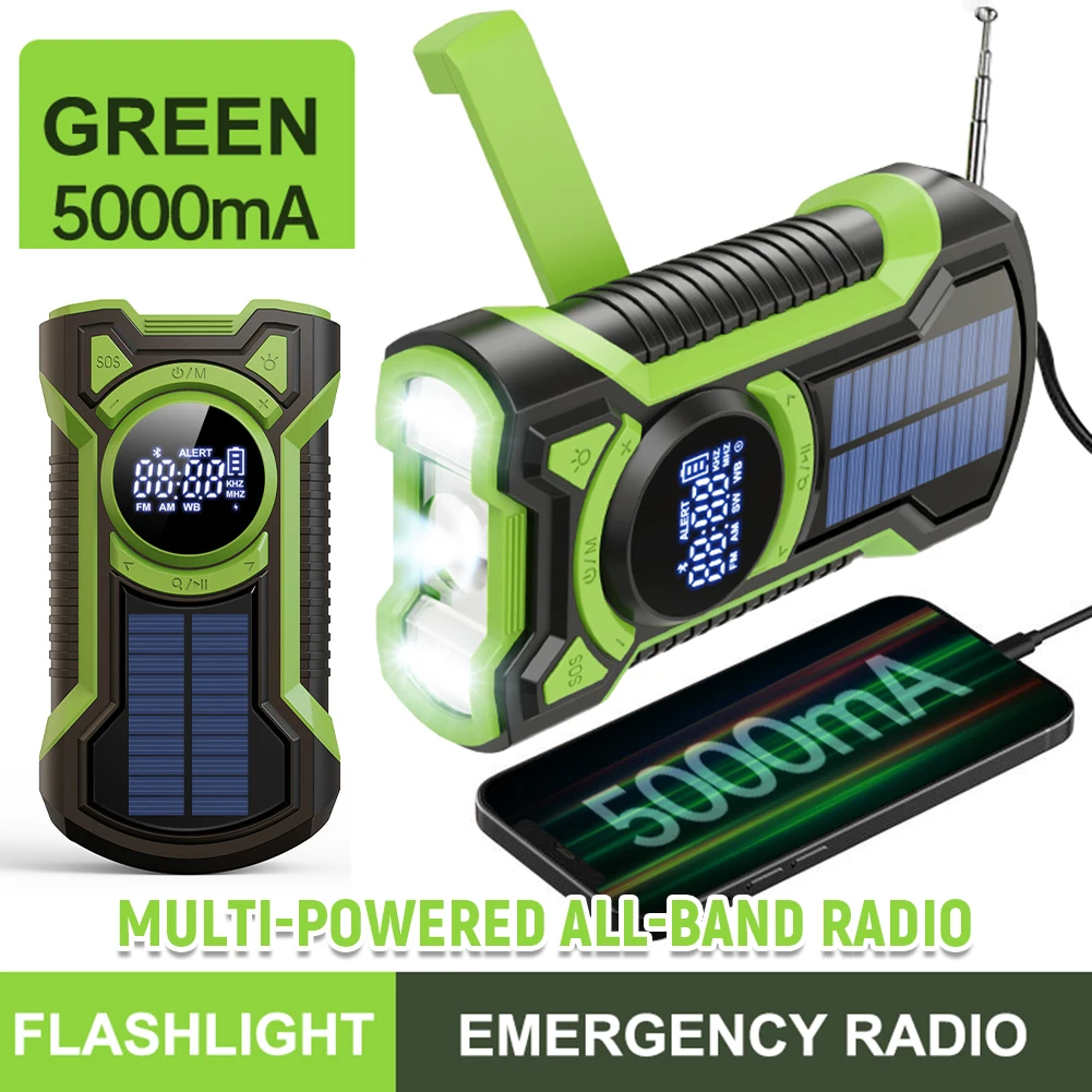 Emergency Radio Hand Crank Solar 5000mAh IPX5 Waterproof Dustproof Bluetooth 5.3 Portable AM/FM/NOAA Weather SOS Alarm Radio