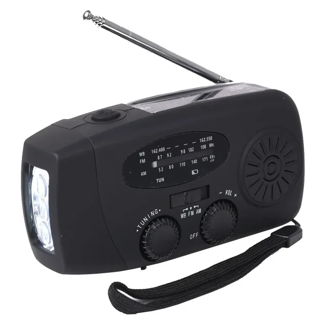 Emergency Radio Hand Crank Solar USB (FM/ AM/ NOAA) WB Weather Radios with Flashlight Power Bank Black Radios Portatil Am Fm