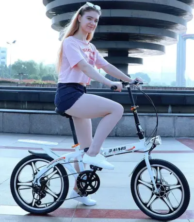16 inch portable three-fold folding bicycle men’s and women’s 7-speed disc brake bicycle folding compact and lightweight scooter