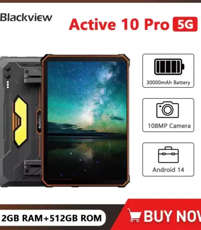 Blackview Active 10 Pro 5G Rugged Tablet 11 Inch FHD+ 30000mAh Large Battery 12GB+256GB/512GB 108MP 55W Android 14 Tablets Pad