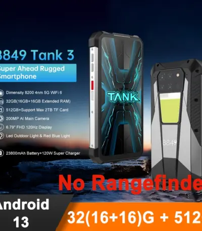$643.79 – $745.32Price range: $643.79 through $745.328849 Unihertz Tank 3 Rugged Phone 32GB+512GB 200MP Camera Night Version 23800mAh 6.79″ Android 13 Dimensity 8200 5G Smartphone