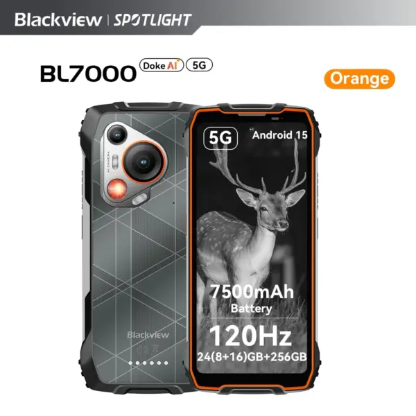 BLACKVIEW BL7000 5G AI Rugged Phone Deepseek GPT Android 15 Smartphone, 6.78″ HD+2.4K Display 120Hz, 8GB RAM 256GB, 7500Amh