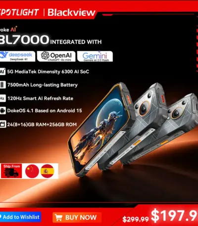 BLACKVIEW BL7000 5G AI Rugged Smartphone MTK 6300, 6.78″ HD+2.4K Display 120Hz, 8GB + 256GB, 7500Amh Cerllphone Android 15
