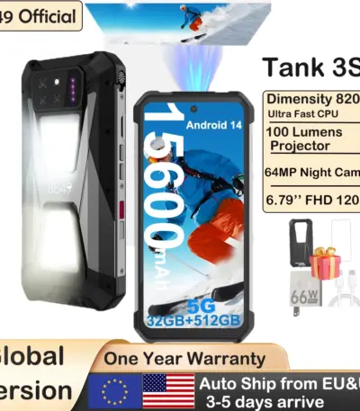 8849 Tank 3S Unihertz Rugged Smartphone with Projector 5G 24/32GB RAM 256/512GB ROM Dimensity 8200 64MP Night Vision Phone