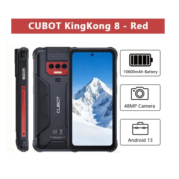 Cubot KingKong 8 Rugged 4G Smartphone Android 13 Octa Core 6GB+256GB 6.528Inch FHD Mobile Phone 10600mAh Battery 48MP Camera NFC