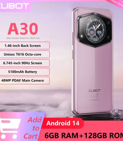 Cubot A30 Android 14 Smartphone Dual Screen Design 6GB RAM+128GB ROM 6.745-inch 90Hz Display 5100mAh 48MP Main Camera Face ID
