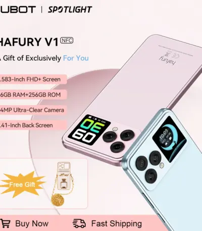 Cubot Hafury V1, Smartphone Android, 16GB RAM(8GB+8GB), 256GB ROM, Dual Screen, 64MP Camera, NFC, Global Version, Dual 4G Phone