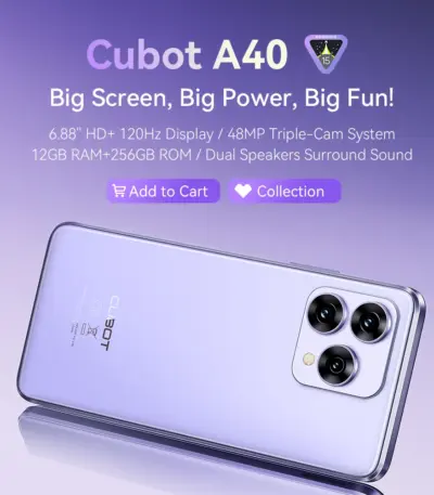 Cubot A40 Smartphone, Android 15, 12GB RAM+256GB ROM, 6.88-Inch 120Hz Screen,Octa-core, 48MP Camera, 5100mAh Battery,NFC,Face ID