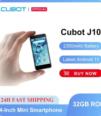 Cubot J10 Smartphone 4-Inch Mini Phone 2350mAh 32GB ROM 5MP Rear Camera Google Android 11 Dual SIM Card 3G Telephone Face ID
