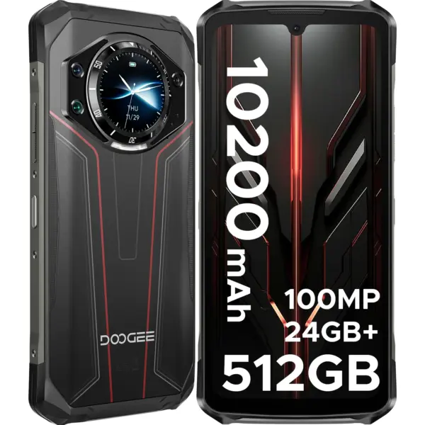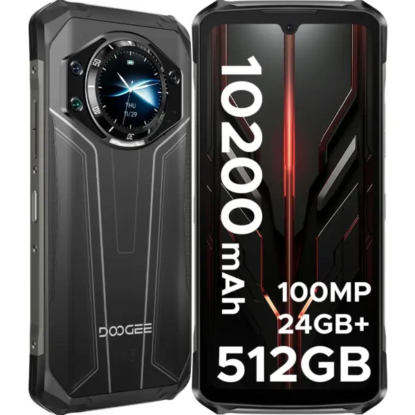 DOOGEE S119 Rugged Phone 1.32″ Rear Display 6.72″ 32GB(8+24) 512GB 100MP Main Camera 10200mAh Large Battery NFC Cellphone
