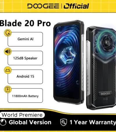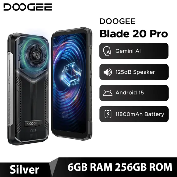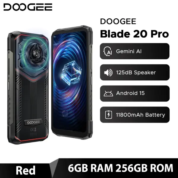 DOOGEE Blade20 Pro Rugged Phone Gemini AI Android 15 125dB Speaker 11800mAh Battery 6GB 256GB 6.6” Screen Mobile Phone NFC