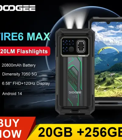 DOOGEE Fire 6 Max 5G Rugged Phone 20GB RAM 256GB ROM 6.72” Dual Flashlight 20800mAh Battery Cellphone Thermal Imaging