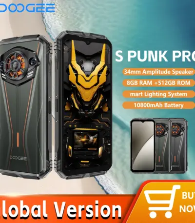 DOOGEE S PUNK PRO Smartphone 6.6″ FHD+ 90Hz Android 14 20GB+12GB RAM 512GB ROM 10800mAh 33W Fast Charge 50MP AI Camera 128dB Spe