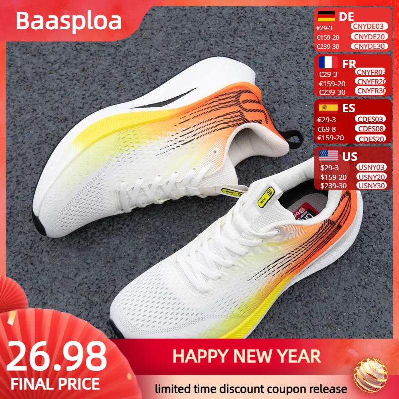 Baasploa New Men Running Shoes Mesh Breathable Carbon Plate Non-slip Sports Shoes Male Outdoor Lightweight Professional Sneakers