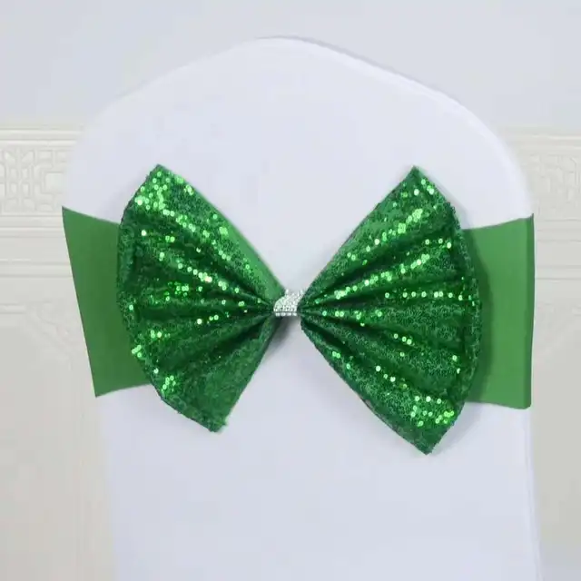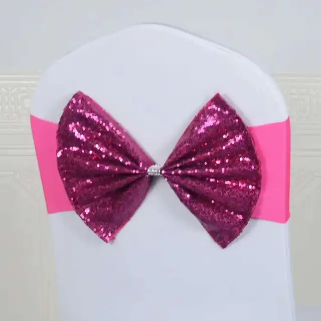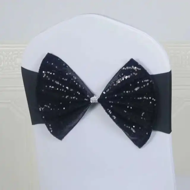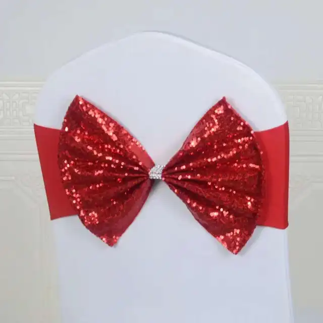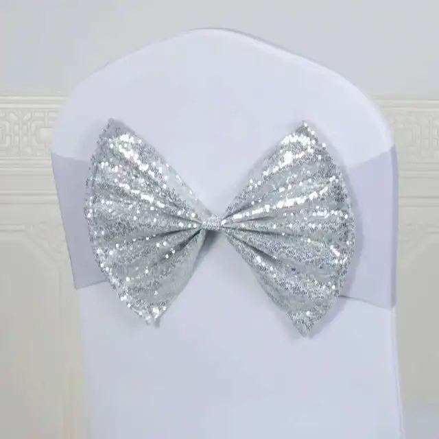 10/50/100pcs Chair Sashes Big Bow Tie Spandex Sequin Bands Knot For Wedding Birthday Party Reception Banquet Event Decorations