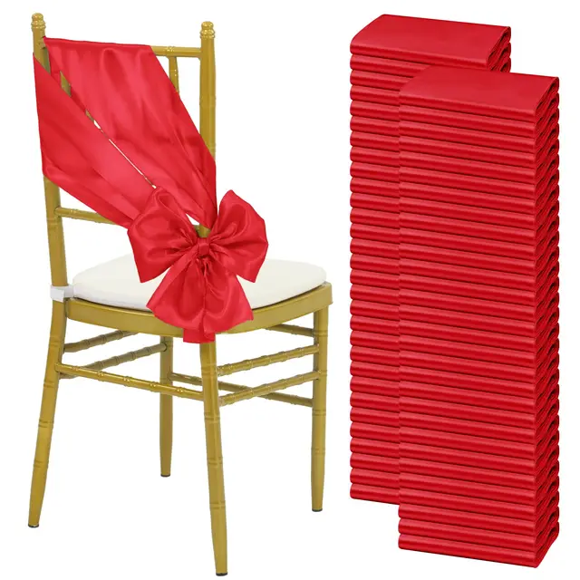 10/50 PCS Satin Chair Sashes Decorative Bow Chair Sashes Ties Chair Ribbon for Wedding Party Banquet Home Kitchen Decoration
