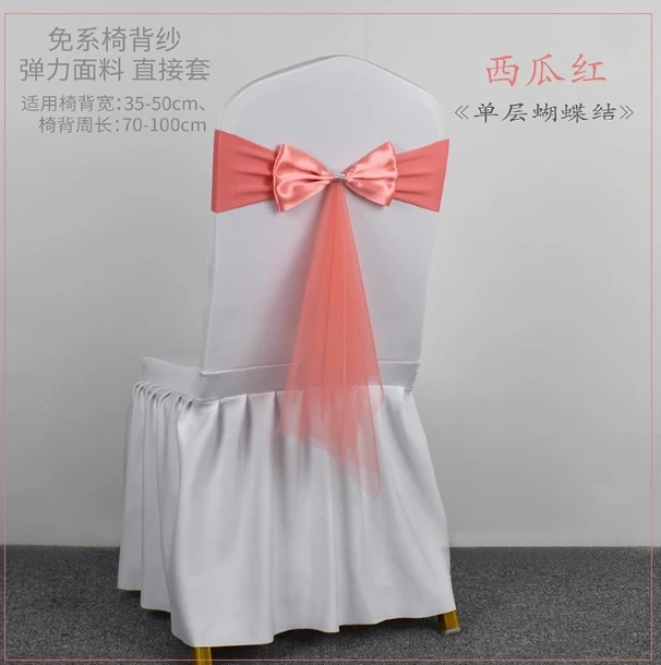 10 50pcs Spandex Chair Sashes with Gauze Wedding Lycra Chair Band Stretch Chair Bows For Banquet Party Event Decoration Supplies