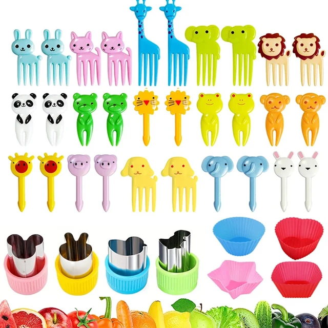 Mini Animal Cartoon Food Selection Children’s Snack Cake Dessert Food Fruit Fork, Silicone Lunch Box Dispenser