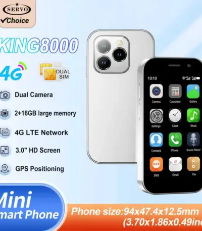 2025 HOT SALE SERVO KING8000 4G Mini Smartphone Android Global GPS 3.0″ Display 5MP+2MP WIFI 2000mAh Battery Small Mobile Phones