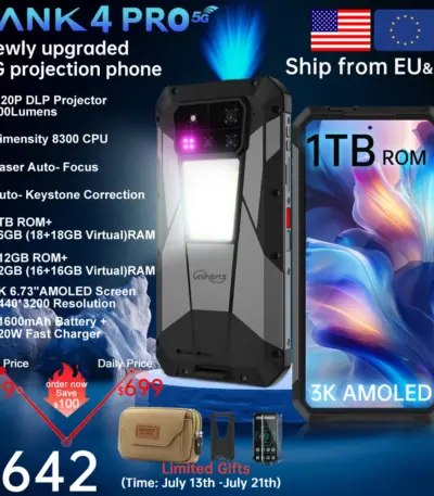 【World premiere】Unihertz by 8849 Tank 4 pro Smartphone 5G with 720P Projector Dimensity 8300 36GB+1TB Cellphone 3k AMOLED