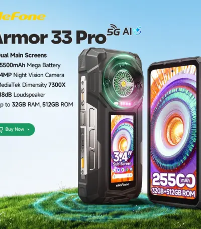【World Premiere】Ulefone Armor 33 Pro 5G Rugged Phone 25500 mAh 512GB ROM 120Hz 6.59”3.4″ Rear Screen NFC Android Smartphone