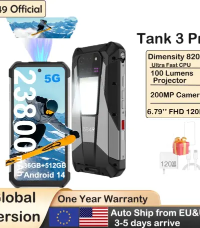8849 Tank 3 Pro Unihertz Rugged Smartphone 5G with 100 Lumens Projector 32/36GB 512GB 23800mAh Android 14 Cell Phones Dual Sim