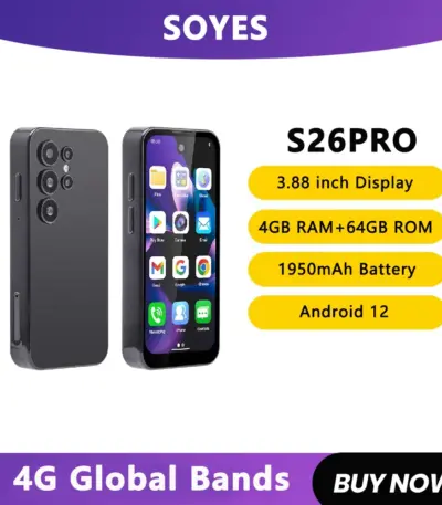 4G Full Bands Mini Smartphone Android 12 3.88″ Display 3+32GB/4+64GB Mobile Phone 1950mAh Small Cell Phone Global SOYES S26 Pro