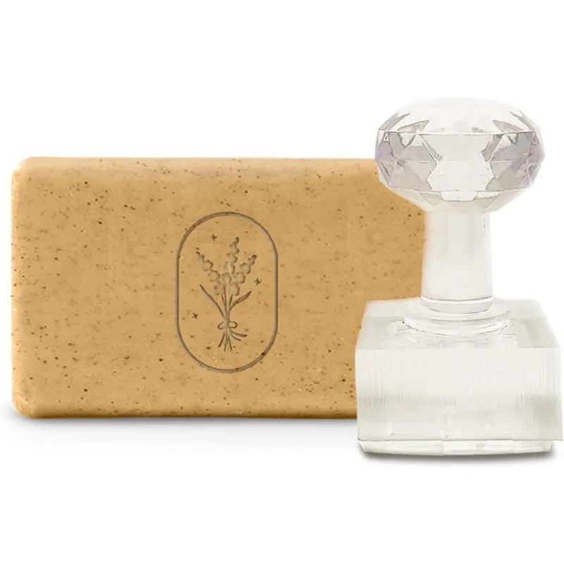 1pc Acrylic Soap Stamp 5.5″ Soap Embossing Stamp for Cookie Clay Pottery Stamp Biscuits Gummier DIY Arts Crafts Making Projects